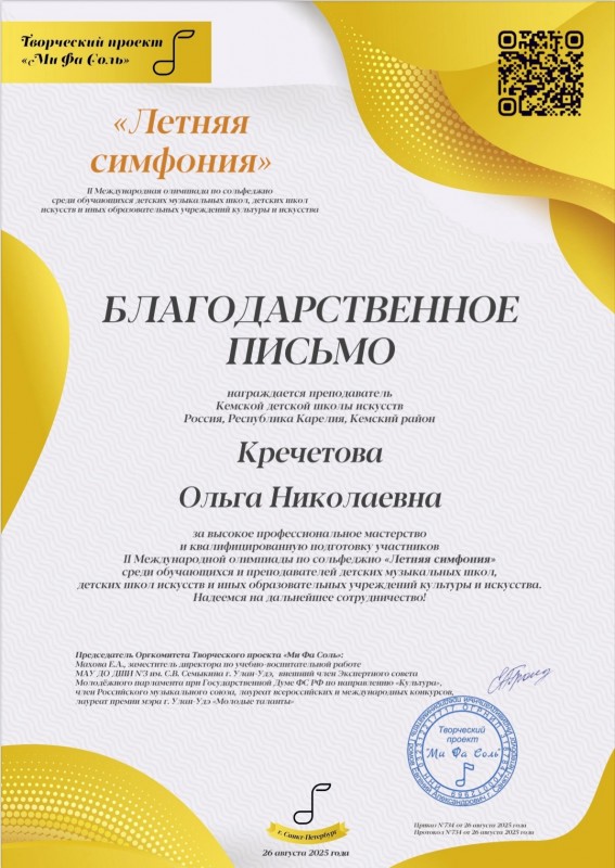 Поздравляем! Денисовский Николай - Лауреат I степени II Международной дистанционной олимпиады по сольфеджио «Летняя симфония», г. Санкт-Петербург. Преподаватель Кречетова Ольга Николаевна.