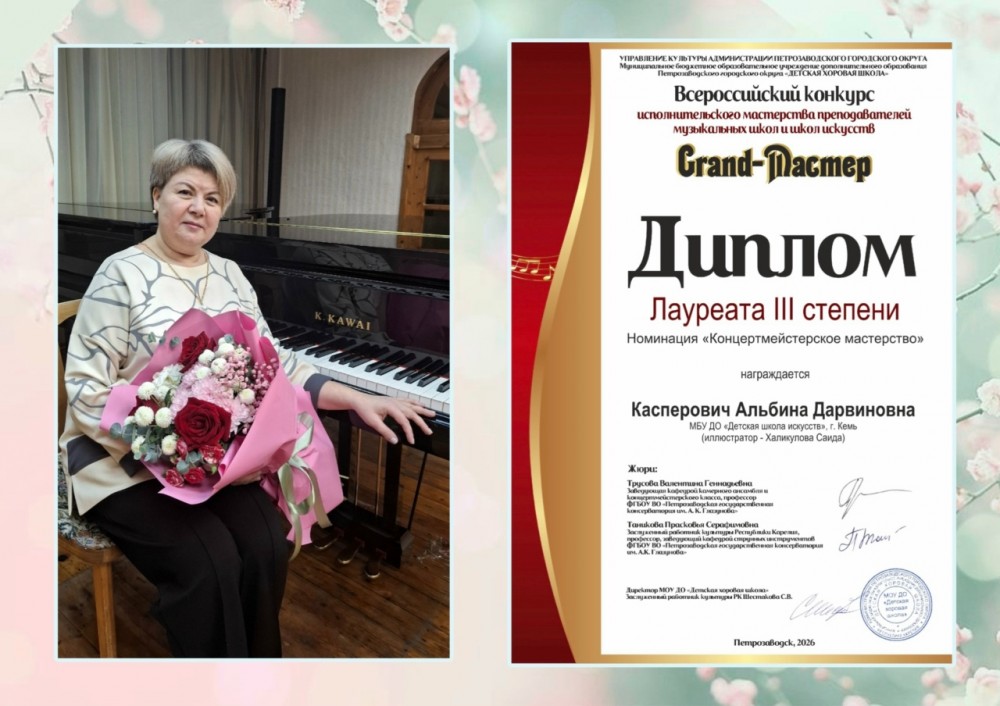 В Петрозаводской Детской хоровой школе подвели итоги Всероссийского конкурса исполнительского мастерства преподавателей ДМШ и ДШИ "GRAND-МАСТЕР". Конкурс проходил в заочном формате. Выступления преподавателей оценивало жюри: