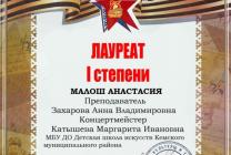Поздравляем Малош Настю (преподаватель Захарова Анна Владимировна, концертмейстер Катышева Маргарита Ивановна) и Евгению Олеговну Малош (концертмейстер Алексахина Анастасия Игоревна) с победой во Всероссийском дистанционном творческом конкурсе "Песни фронтовых лет" !