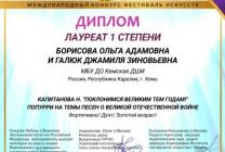Борисова Ольга Адамовна и Галюк Джамиля Зиновьевна - Лауреат I степени Международного фестиваля-конкурса искусств «Арт-Звезда».