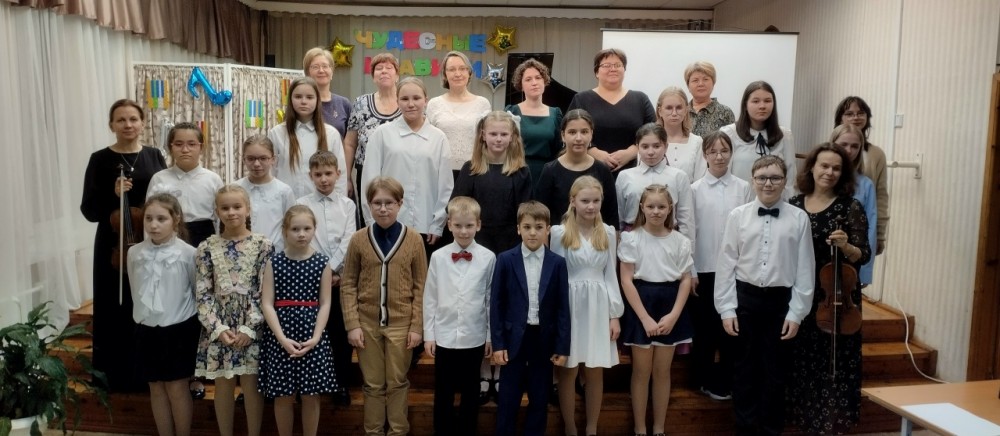 5 декабря в зале Детской школы искусств прошел ежегодный концерт в рамках проекта “Чудесные клавиши”. Учащиеся и преподаватели отделения "Фортепиано" продемонстрировали публике палитру танцевальных жанров, среди которых были менуэт, сарабанда, гавот, вальс, полька, галоп, тарантелла, болеро и многие другие. Ведущая концерта Юлия Анатольевна Бедина познакомила слушателей с историей происхождения каждого танца, надежные соратники пианистов - преподаватели отделения “Струнные инструменты”- Юлия Владимировна Яковлева и Анна Владимировна Захарова приняли участие в концерте в качестве иллюстраторов. В концерте приняли участие: Панкратьева Ника, Петрова Мария, Коновалова Мирослава, Ольшанская Софья, Искакова Фаина, Прохорова Виктория, Салтыкова Аделина, Салтыкова Алиса, Замятина Варвара, Прохорова Руслана, Кошкин Вадим, Скорняков Михаил, Айтанова Элина, Богданов Арсений, Капарзова Валентина, Петрова София, Мерецких Арина, Мелайкина Ульяна, Киуру Илья, Городищер Кристина, Иванова Варвара, Метлина Дарья, Королькова Анастасия, Денисовский Николай, Протасова Аделина. А также преподаватели отделения: Царук Наталья Леонидовна, Борисова Ольга Адамовна, Галюк Джамиля Зиновьевна, Катышева Маргарита Ивановна, Касперович Альбина Дарвиновна.Выражаем признательность всем участникам мероприятия за представленную возможность насладиться прекрасным музыкальным вечером!