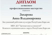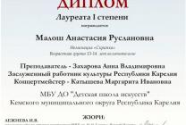Малош Анастасия - Лауреат I степени Преподаватель Заслуженный работник культуры РК Захарова Анна Владимировна, концертмейстер Катышева Маргарита Ивановна отмечены благодарственными письмами за высокое педагогическое мастерство. Поздравляем Анастасию и преподавателей! Желаем дальнейших творческих достижений!